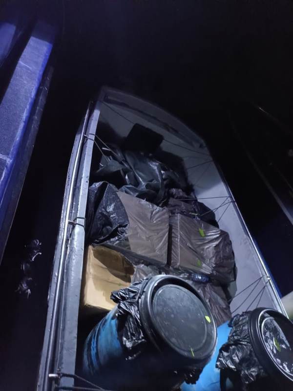 Setelah dilakukan penangkapan, tim patroli Bea Cukai Batam melakukan pemeriksaan terhadap muatan kapal cepat tersebut. Setelah dilakukan pemeriksaan, ditemukan barang kena cukai (BKC) jenis Hasil tembakau (HT) tanpa pita cukai merek H-Mind sebanyak 23 karton atau 286.560 batang rokok.